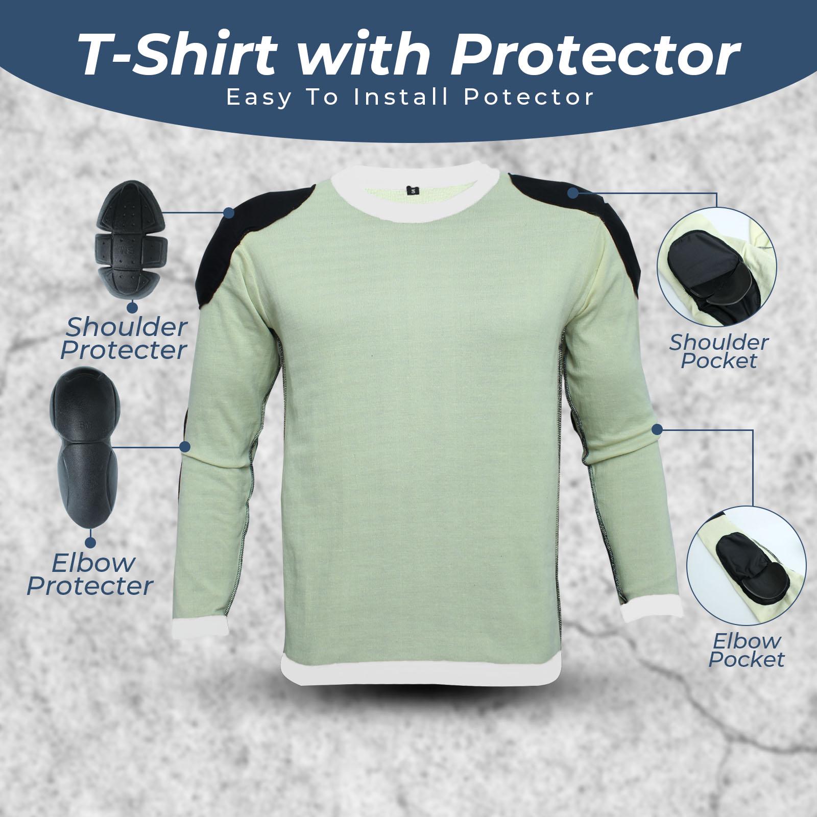 Looking for protection without the bulk of a heavy motorcycle jacket? This Kevlar-lined full-sleeve white motorcycle t-shirt combines abrasion resistance, breathability, and impact protection to give you the ultimate riding experience. Equipped with CE-certified armor pads on the shoulders and elbows, this shirt offers reliable safety while keeping you stylish and comfortable.