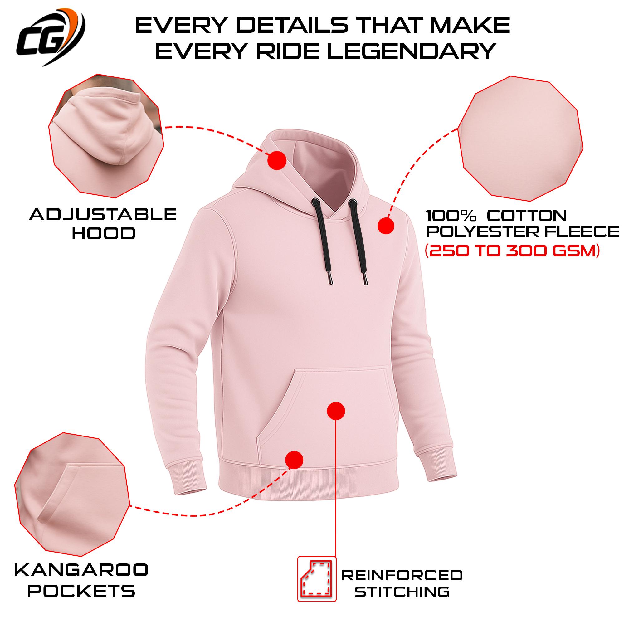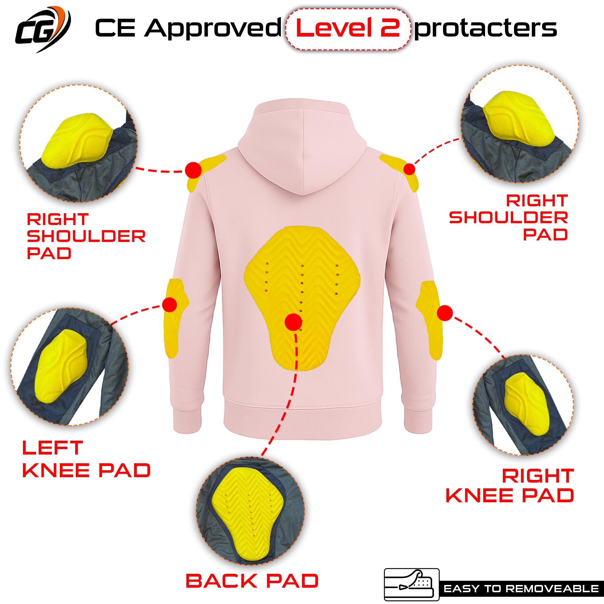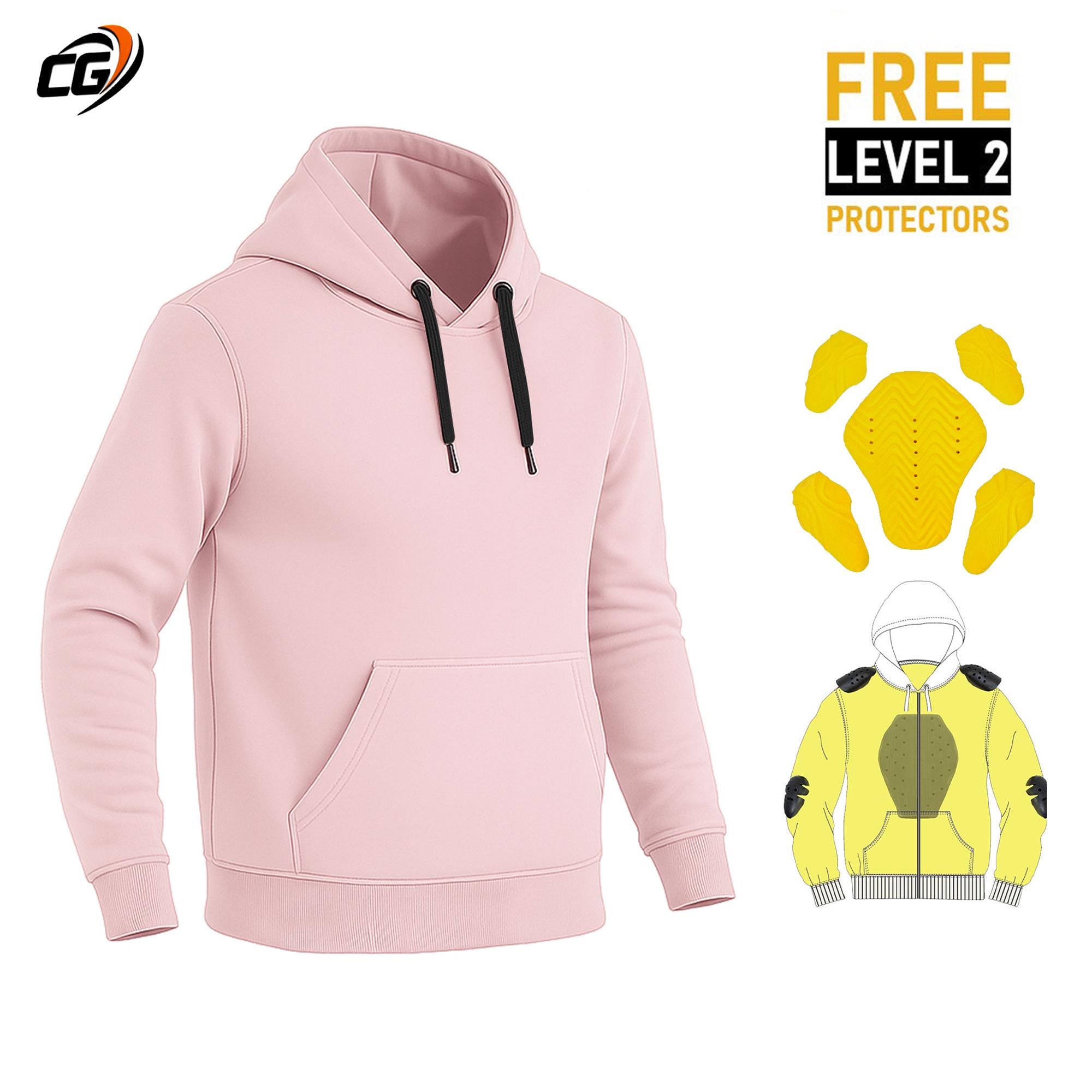 Ride safe and stand out in style with our Pale Pink Kevlar-Lined Pullover Motorcycle Hoodie.