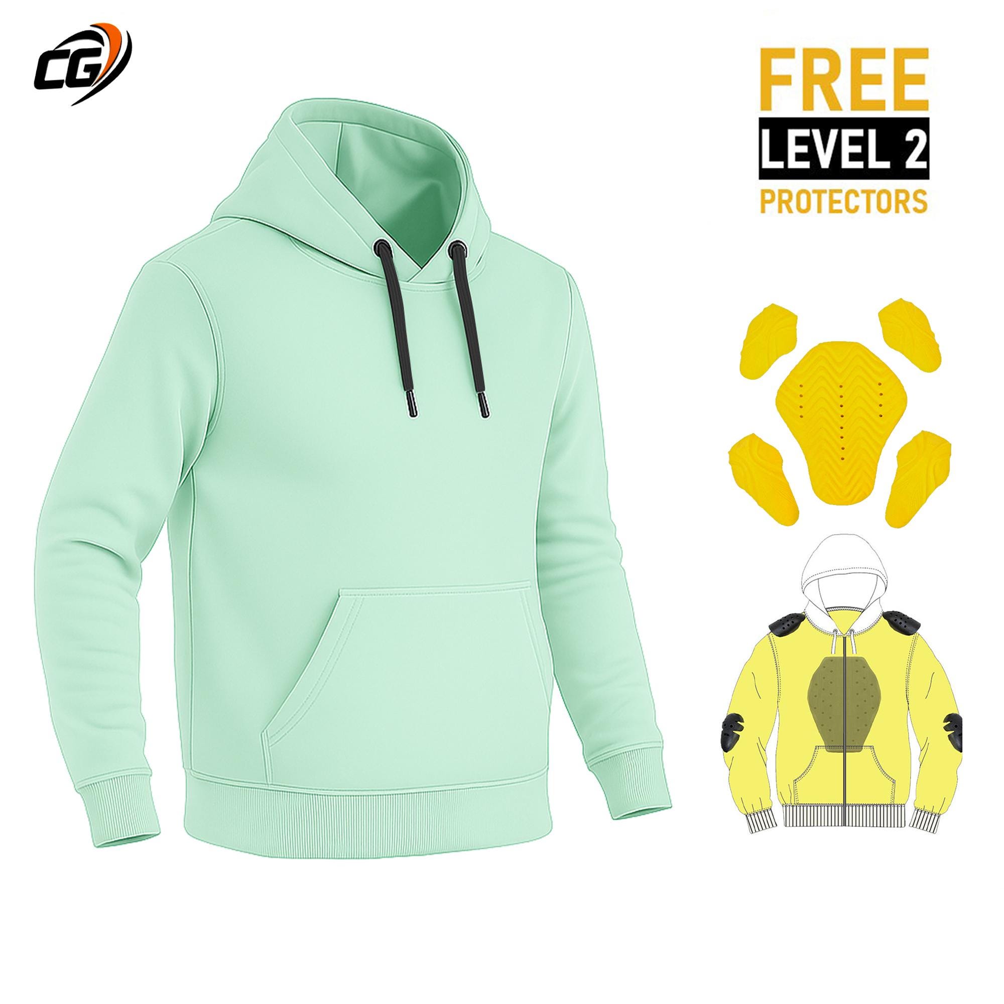 This Mint Green Kevlar-lined motorcycle hoodie is built for those who value both style and safety. Designed for men and women riders, it blends a clean, casual streetwear look with high-performance protective features โ perfect for riding or daily wear.