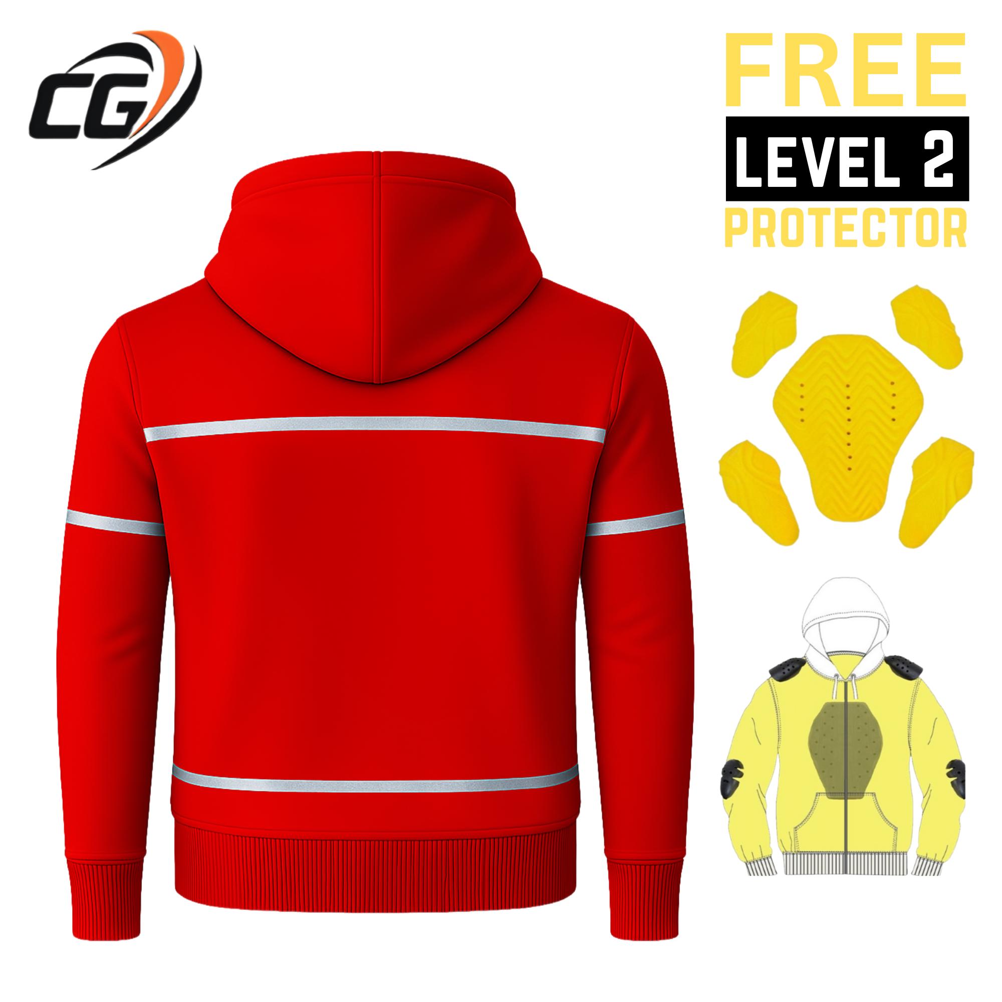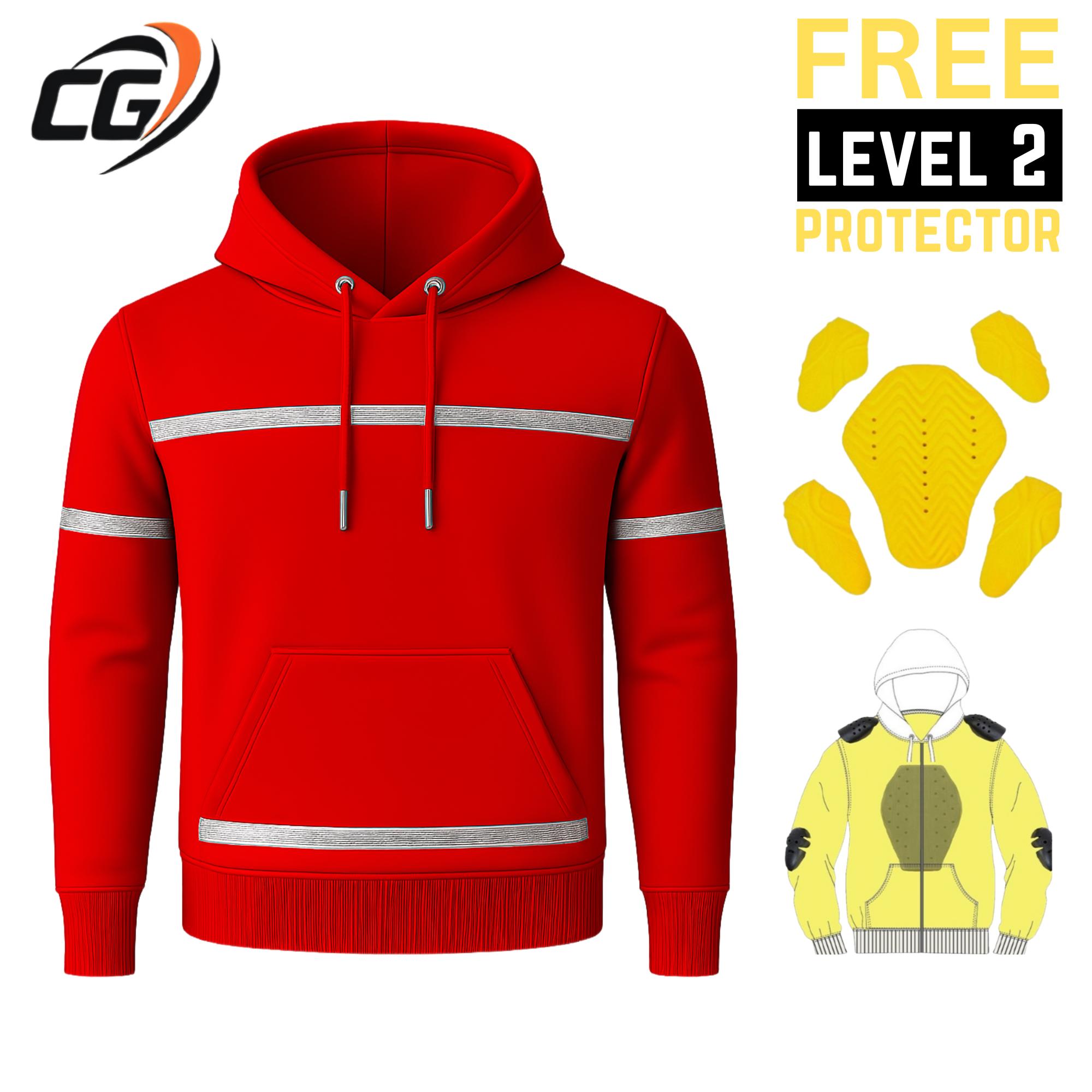 Red kevlar Lined Motorcycle Hoodie with CE Armor & Reflectors