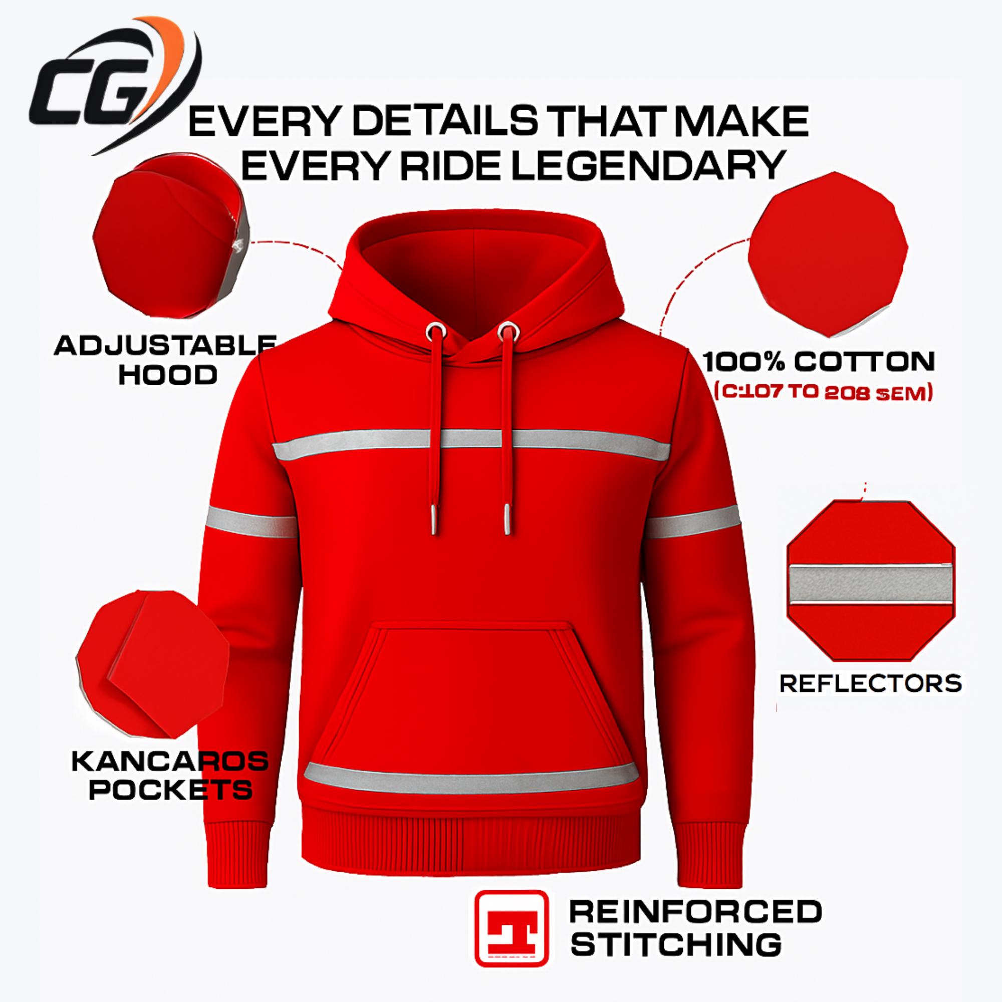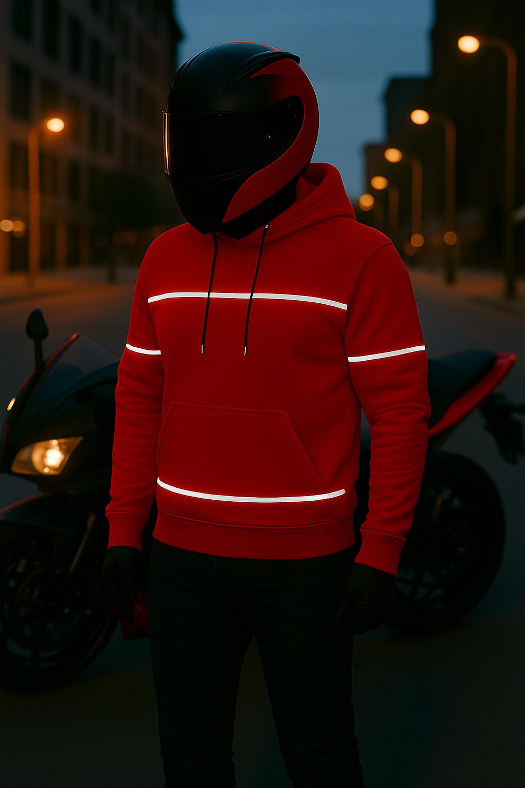 Ride in style and safety with this premium red motorcycle hoodie.