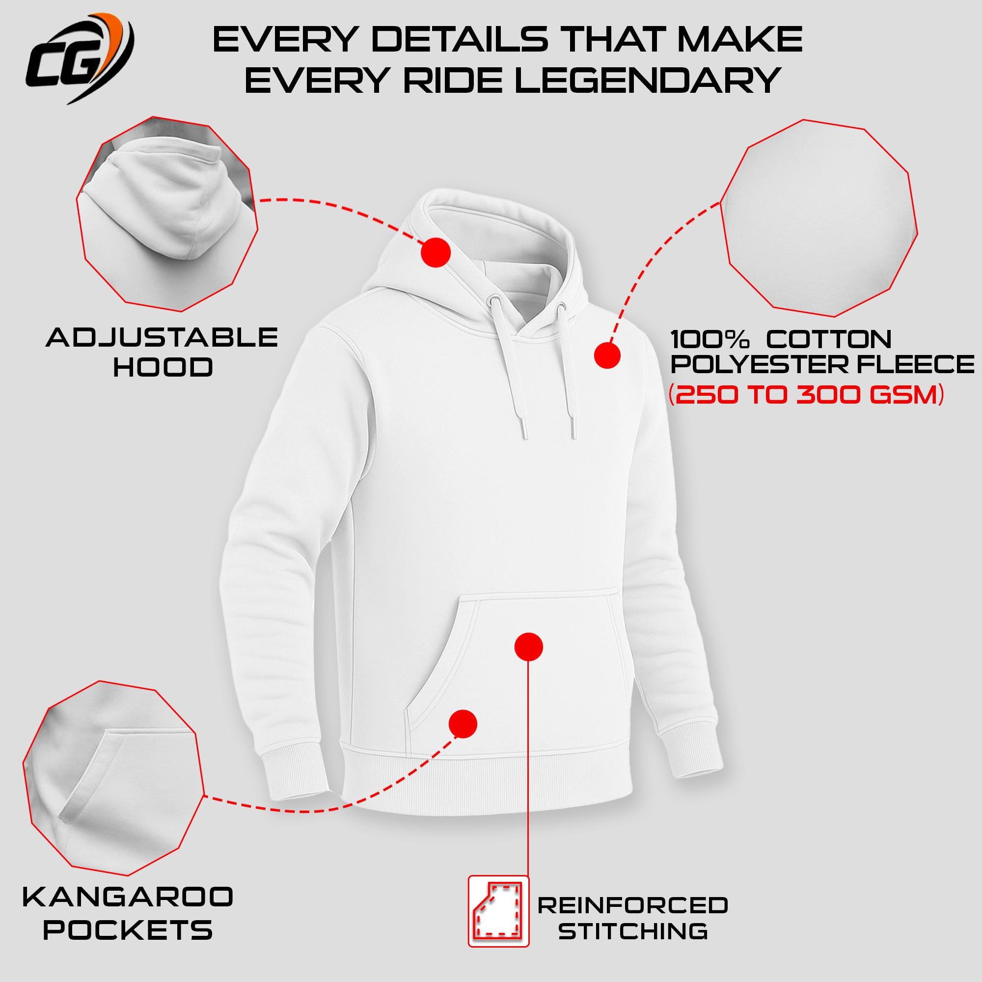 Ride in comfort and safety with our Kevlar-lined motorcycle hoodie in classic white. Designed for both men and women riders, this hoodie blends the casual style of streetwear with the essential protection bikers need on the road.