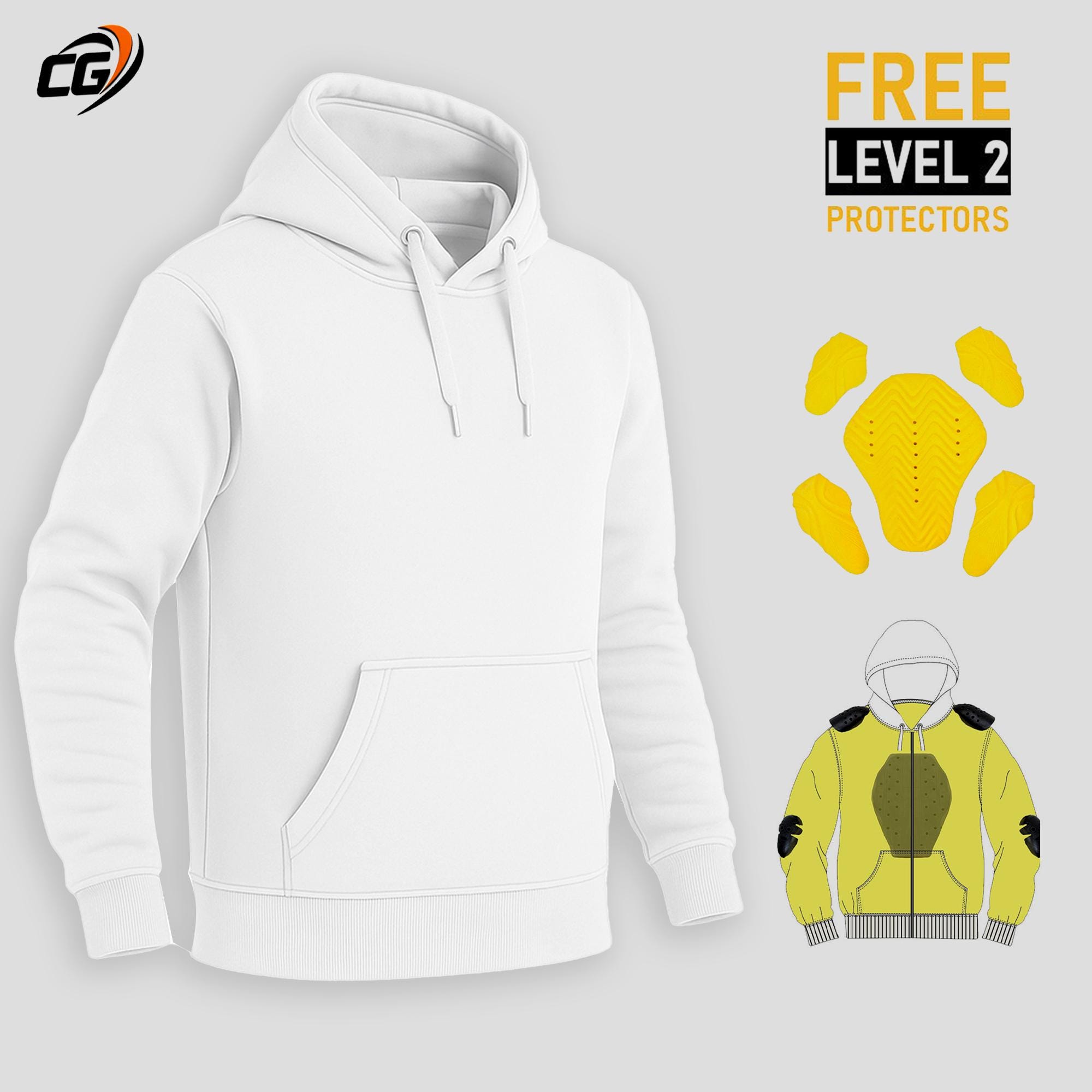 White Kevlar Motorcycle Hoodie – CE Level 2 Protective Pullover