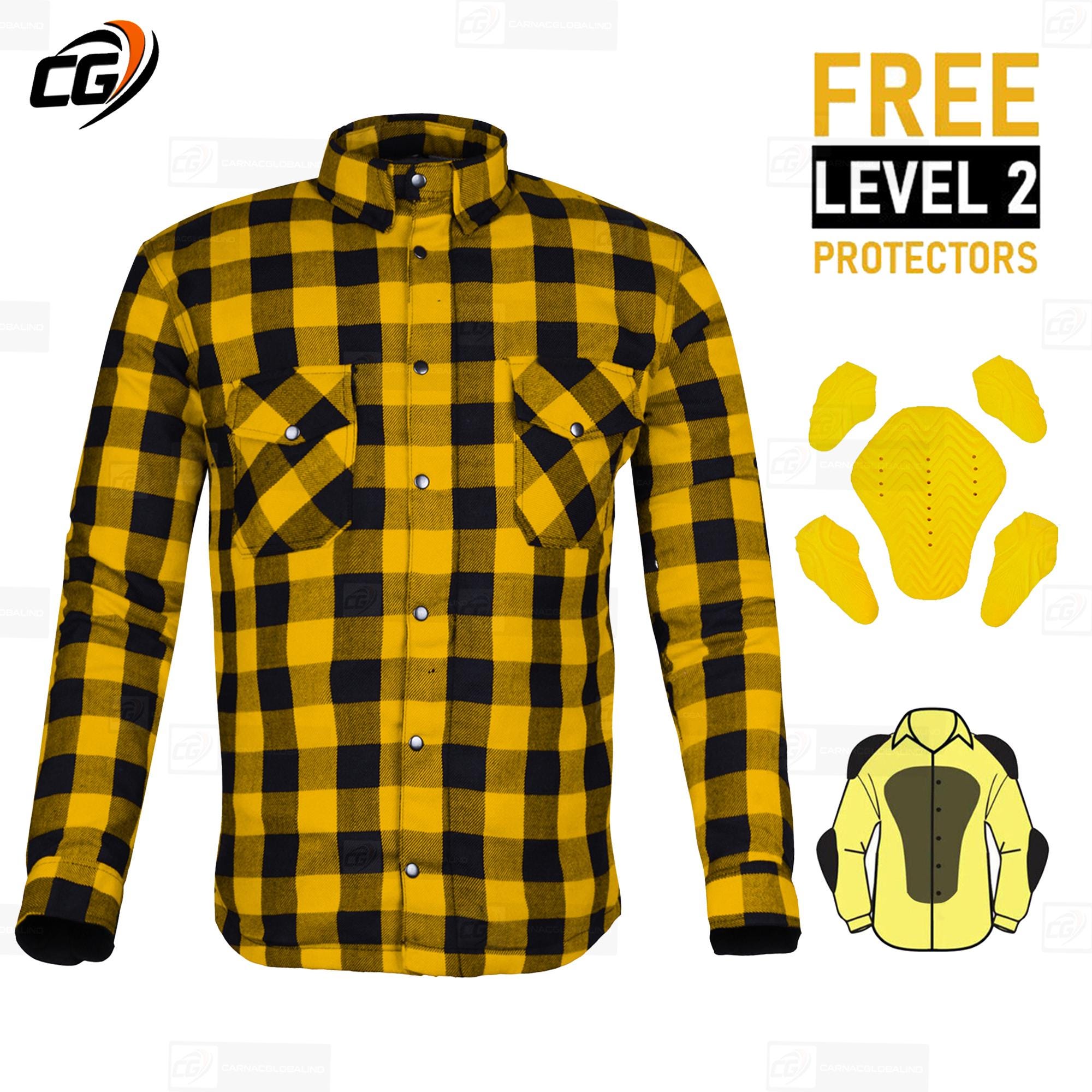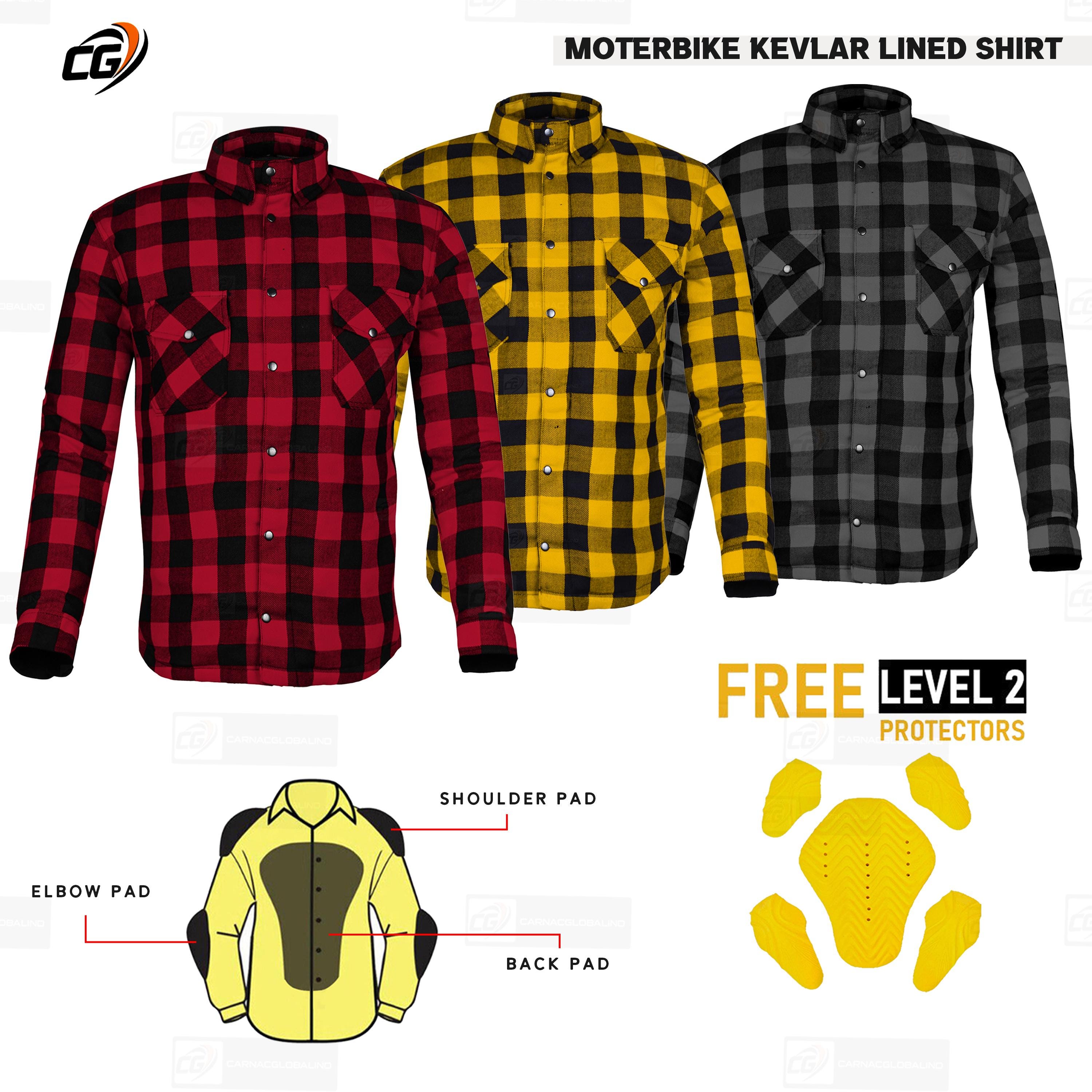 Ride in Style Protective Flannel Motorcycle Shirt with Kevlar Lining – Gray, Yellow, and Red Options | Carnac Global Ind